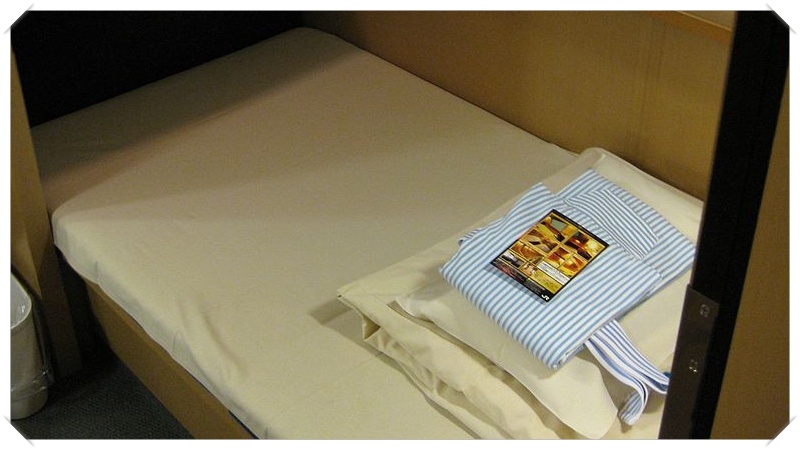 Nobinobi slaapkooien zijn bedden met vloerbedekking waar u op kunt liggen, dekens zijn aanwezig. De ligplaatsen zijn met elkaar verbonden, zonder deur en alleen met een lage tussenwand.
